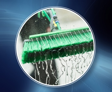- Diese spezielle Spüldüsen-Leiste ist oberhalb der Bürste angebracht und bringt die richtige Menge